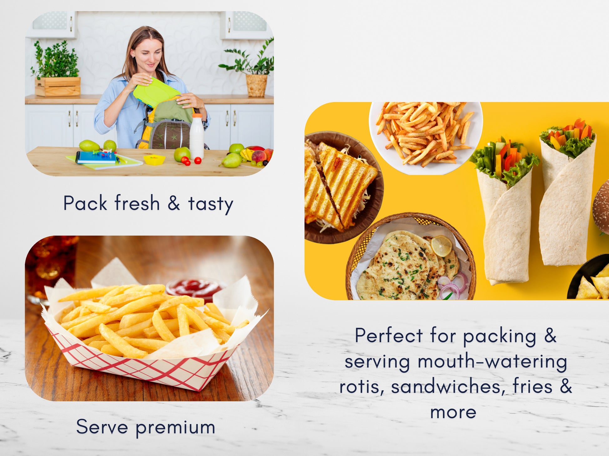 - Wrap Rotis, Sandwiches, Burgers and more for freshness and taste.